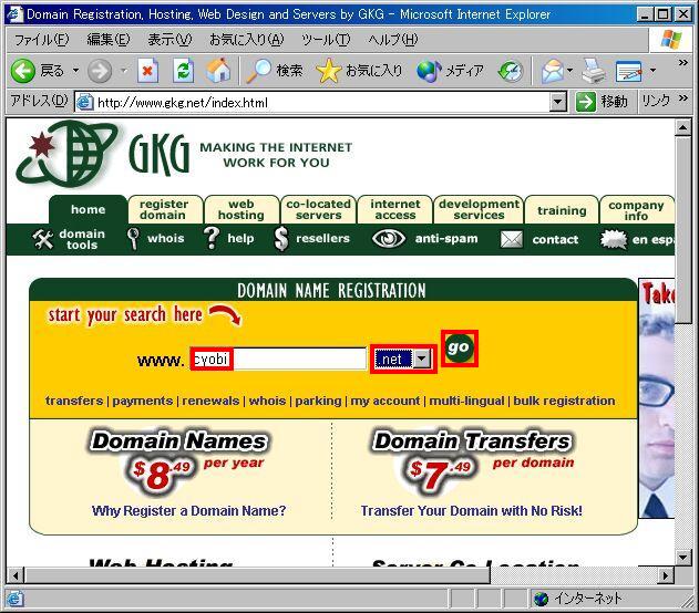 希望のURLを入れて、com org net のところを選択をして「 go 」をクリックしてください。